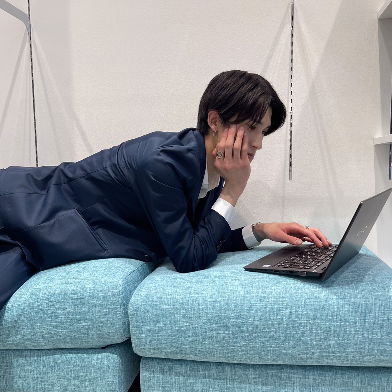 「スーツ着ながら、寝転んでるけどシワにならないの???」