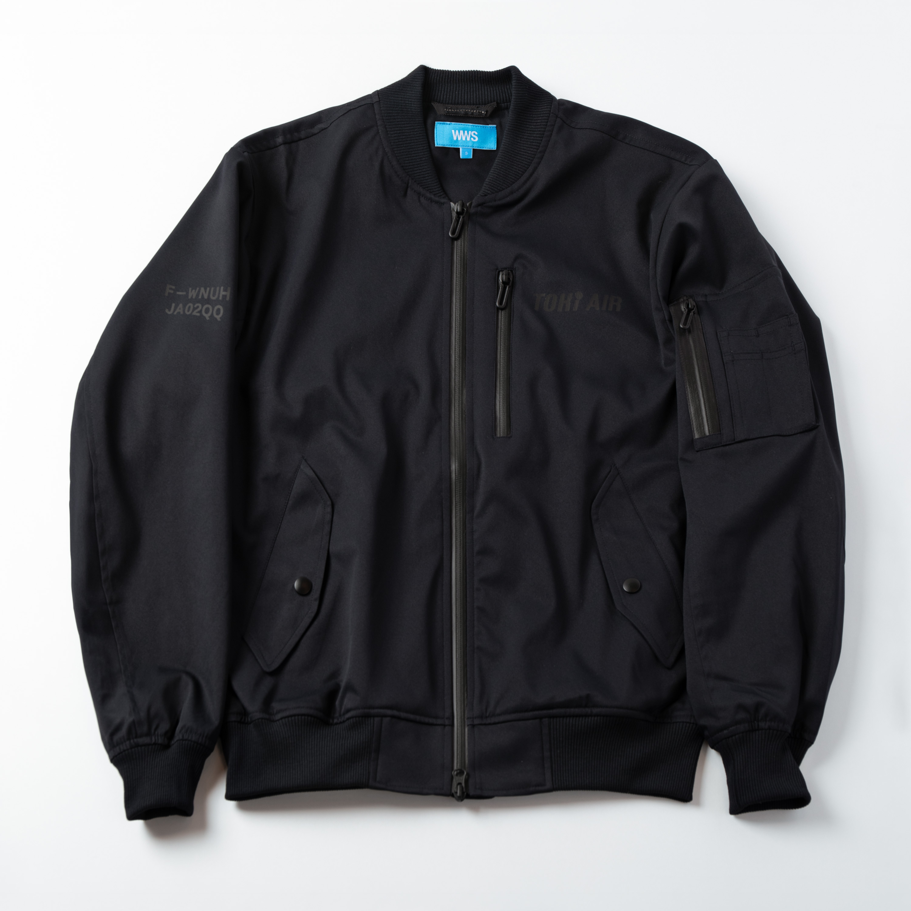 WWSの人気商品「洗えるライトMA-1」をベースに、新潟や佐渡から日本各地へ華麗に飛び立つ朱鷺の翼をイメージしたトキエアのロゴマークや、トキエア2号機の登録記号「F-WNUH」「JA02QQ」をプリントした特別モデルとなっています✈